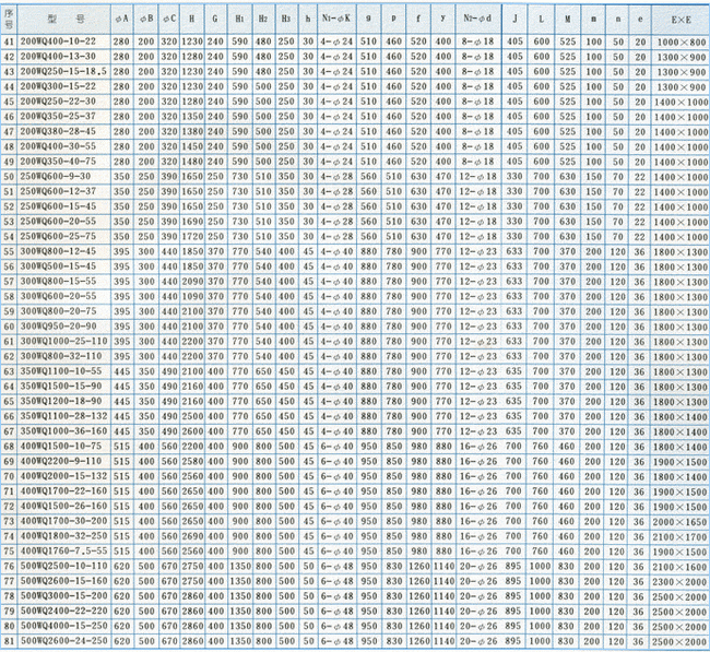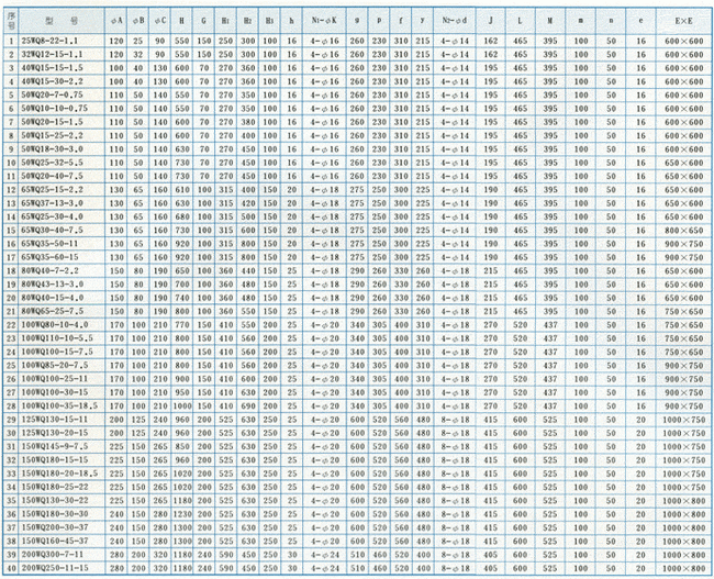 | WQ型無堵塞潛水排污泵外形安裝尺寸表: |