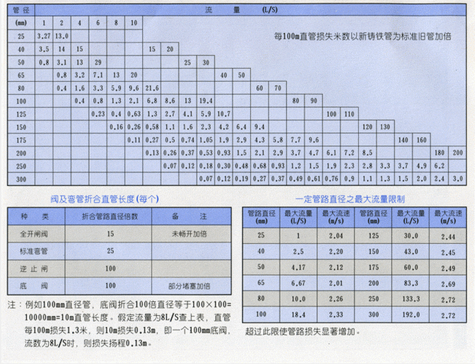 自吸泵管路摩擦損失表: