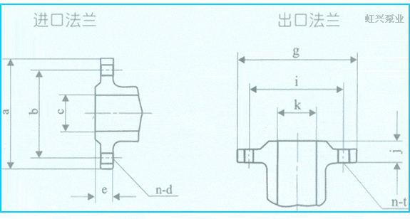 IHF型氟塑料合金離心泵法蘭尺寸表:
