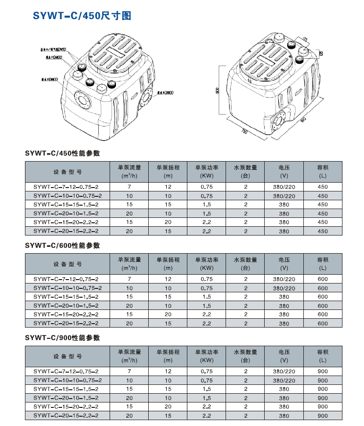 SYWT-C系列PE污水提升器參數(shù)四(450/600/900L尺寸參數(shù))