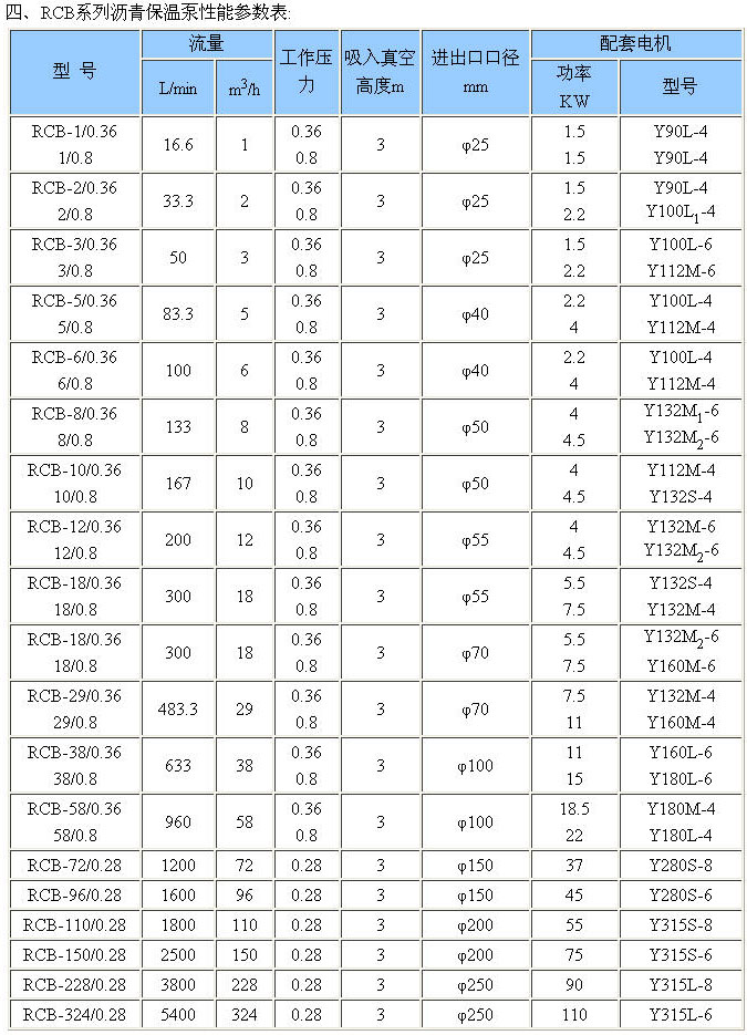 RCB系列瀝青保溫泵適用于輸送無腐蝕性、不含固體顆粒、在常溫下有凝固性的介質(zhì).尤其適用于高寒地區(qū)室外安裝和工藝過程中介質(zhì)需要保溫的場(chǎng)合,介質(zhì)溫度可達(dá)250℃、粘度為5~1500cst。