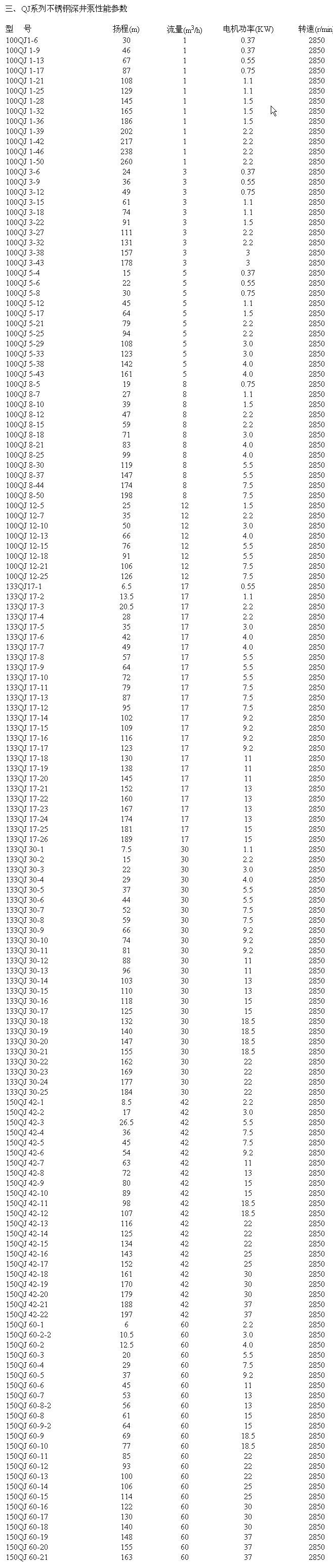不銹鋼系列深井泵是引進(jìn)國(guó)外泵業(yè)公司領(lǐng)先的制泵技術(shù)生產(chǎn)的高性能耐磨型電泵,動(dòng)力部份配用目前國(guó)際先進(jìn)技術(shù)生產(chǎn)的水浸式不銹鋼潛水電機(jī),對(duì)水質(zhì)絕對(duì)無(wú)污染,是當(dāng)前國(guó)內(nèi)外深井泵之精品。選用優(yōu)質(zhì)不銹鋼外殼、軸芯、聯(lián)軸器、入水座和泵頭(或銅合金入水座、泵頭),高強(qiáng)度抗耐磨新型復(fù)合高分子材料葉輪和不銹鋼導(dǎo)流殼,全新“浮動(dòng)式”結(jié)構(gòu)葉輪在工作期間對(duì)電機(jī)無(wú)軸向壓力。特別適用于工礦業(yè)、農(nóng)業(yè)、建筑業(yè)、養(yǎng)殖業(yè)、食品飲料業(yè)及家庭式(或高層送水使用)。