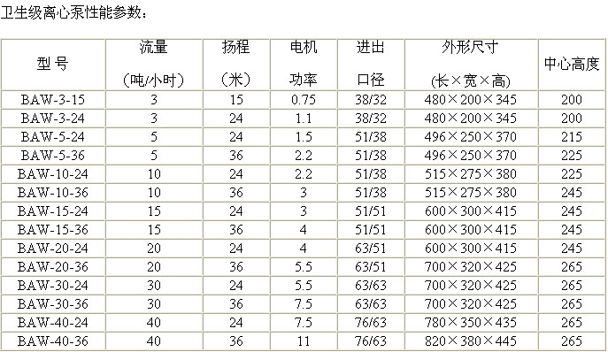BAW型衛(wèi)生級離心泵