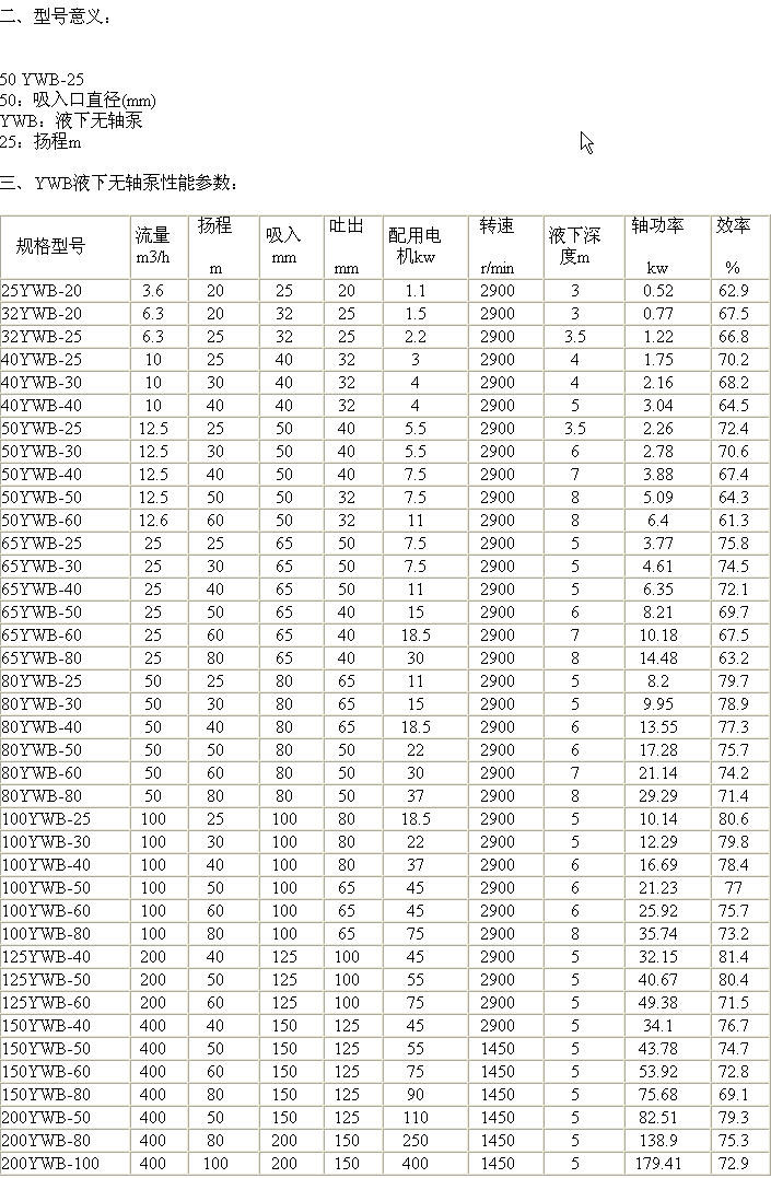 2、YWB液下無軸泵是根據(jù)廣大化工行業(yè)用戶的要求設(shè)計(jì)的新型產(chǎn)品,該泵采用外混式自吸結(jié)構(gòu),除首次啟動(dòng)前須向泵體內(nèi)注滿泵體溶液,以后的頻繁啟動(dòng)不需灌注引水或抽排真空,操作方便,安全省事。機(jī)械密封由英國格蘭盤根公司與國內(nèi)聯(lián)合制造,結(jié)構(gòu)合理,性能可靠,維修方便,節(jié)約能源,是建設(shè)文明工廠的理想設(shè)備,有效地解決了長(zhǎng)軸易彎曲和泄漏問題。