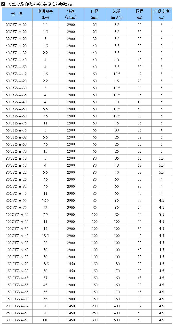 CYZ-A型自吸式離心油泵是根據(jù)國內(nèi)外有關(guān)技術(shù)資料經(jīng)消化、吸收、改進(jìn)后研制而成的泵類產(chǎn)品,該泵適用于石油行業(yè)、陸地油庫、油罐車的理想產(chǎn)品,并適合于作船用貨油泵、艙底泵、消防泵和壓載泵及機(jī)器冷卻水循環(huán)等,分別輸送汽油、煤油、柴油、航煤等石油產(chǎn)品和海水、清水,介質(zhì)溫度-20℃-80℃,如輸送化工液體可改用耐腐蝕機(jī)械密封。