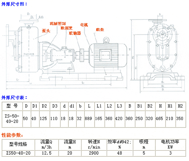 四、ZS型臥式玻璃鋼自吸泵尺寸及參數(shù)表: